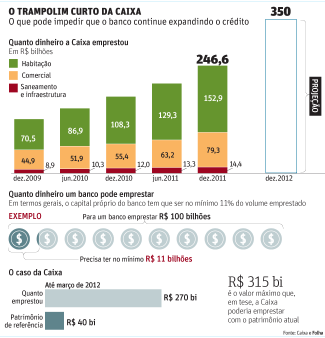 No caso da Caixa, essa relação já chegou a 12,8%. A saída é aumentar a contribuição dos acionistas --a União.a